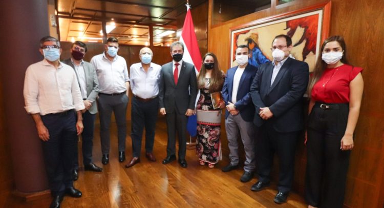 En la foto: El ministro de Industria y Comercio, Luis Castiglioni recibió al gerente de la fábrica, Nail Junior y a otros directivos de la planta.