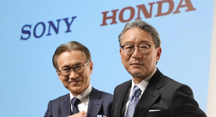 En la foto: Kenichiro Yoshida, presidente de Sony y Toshihiro Mibe, presidente de Honda.