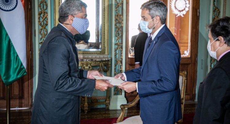 Asunción, Agencia IP.- El Gobierno paraguayo recibió las cartas credenciales del nuevo embajador de la República de la India, Yogeshwar Sangwan. Fue durante una ceremonia que tuvo lugar en Palacio de López y contó con la presencia del jefe de Estado, Mario Abdo Benítez.