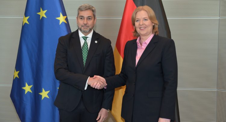 En la foto: Mario Abdo Benítez, presidente de la República y Barbel Bas, presidenta del Parlamento de Alemania