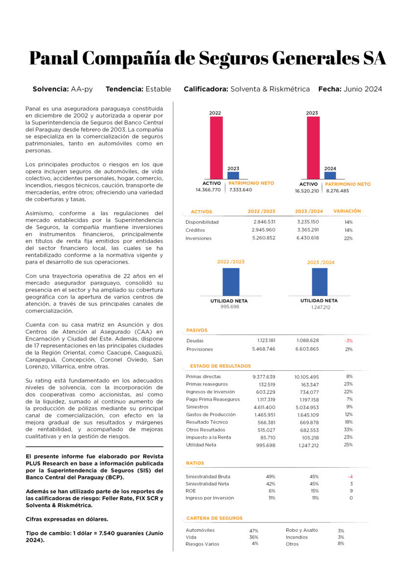 Recientemente, la calificadora de riesgos Solventa & Riksmétrica otorgó a Panal Seguros la calificación AA-py con tendencia Estable, un reconocimiento que subraya su fortaleza financiera y su compromiso con la excelencia.