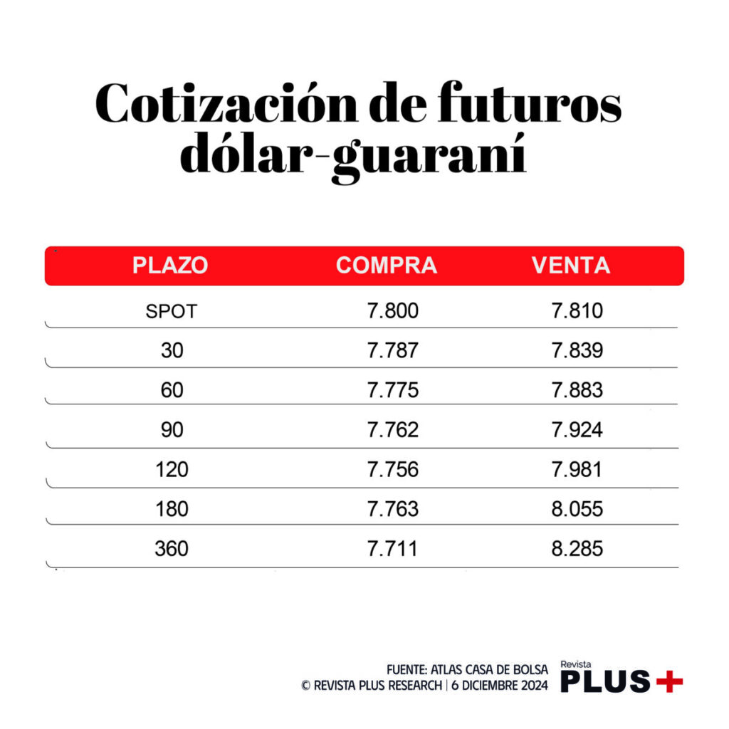 Asunción (Paraguay).- El tipo de cambio dólar-guaraní se encamina a cerrar el 2024 alrededor de 7.800, nivel que parece brindar estabilidad al mercado y comodidad al Banco Central del Paraguay (BCP), que ha reducido sus intervenciones diarias.