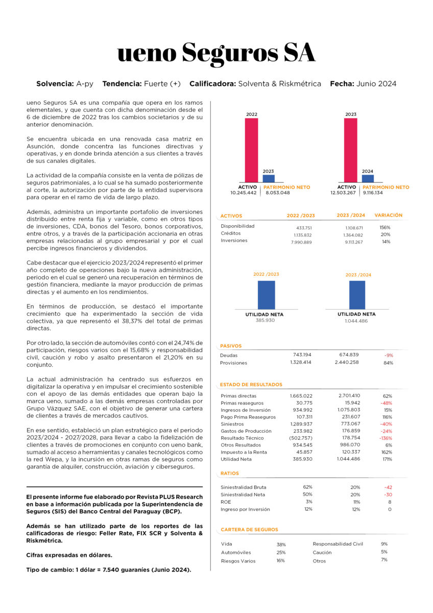 Asimismo, el entorno económico de Paraguay, con políticas prudentes y un sector agrícola en recuperación, crea un escenario favorable para el sector asegurador. Esto permite a ueno Seguros ofrecer un respaldo más amplio a empresas y ciudadanos en una economía cada vez más estable y competitiva.