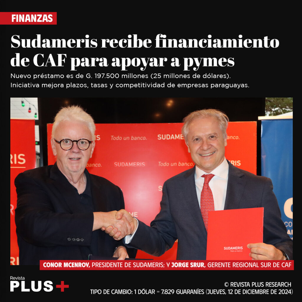 Asunción (Paraguay).- En un claro impulso al desarrollo económico de Paraguay, el Banco de Desarrollo de América Latina y el Caribe (CAF) ha otorgado un nuevo financiamiento de G. 197.500.000.000 (US$ 25.226.721) a Banco Sudameris.