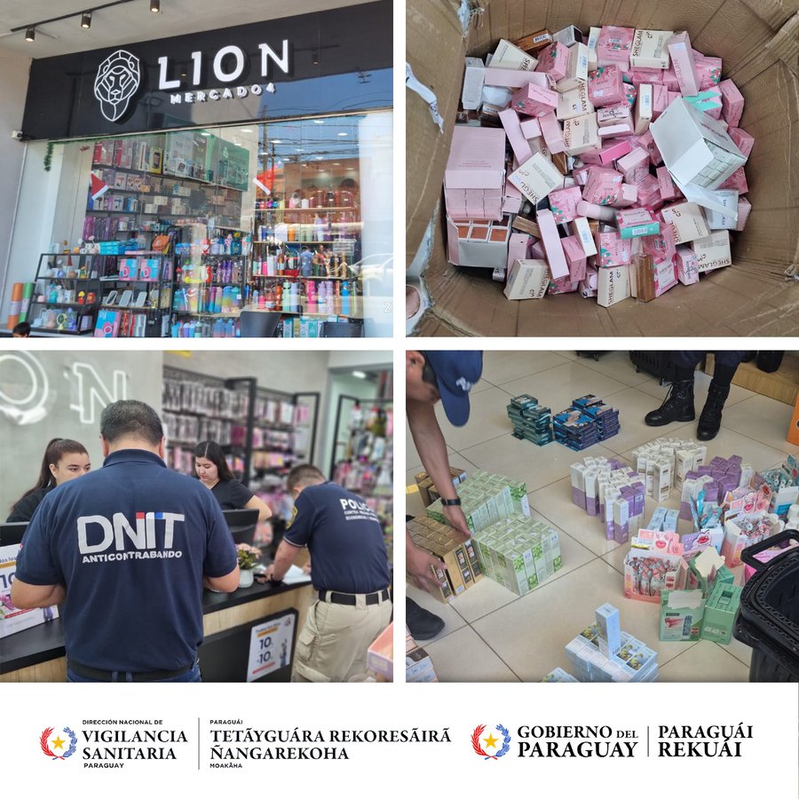 Los procedimientos se realizaron de manera simultánea en cinco locales del Shopping Lion apostados en Asunción y el departamento Central. Los mismos estuvieron a cargo de autoridades de la Dirección Nacional de Ingresos Tributarios (DNIT), Dirección Nacional de Vigilancia Sanitaria Paraguay (Dinavisa) y Policía Nacional.