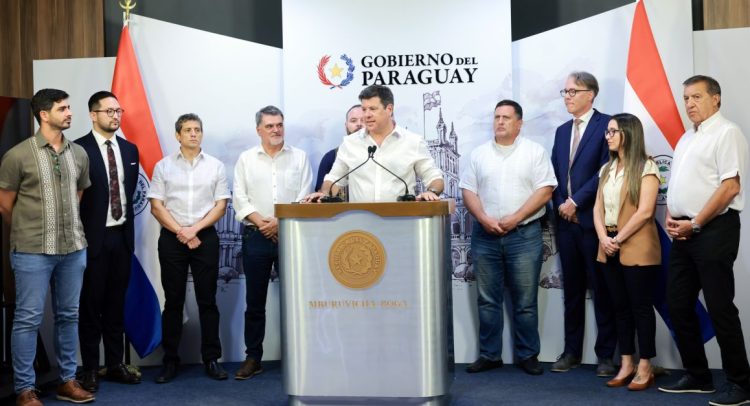 Los ministros del Ambiente, Rolando de Barros, y de Industria y Comercio (MIC), Javier Giménez, acompañados de representantes de empresas y gremios de la producción presentaron los detalles del decreto que reglamenta la Ley 7.190/23, fruto de un trabajo consensuado entre todos los sectores.