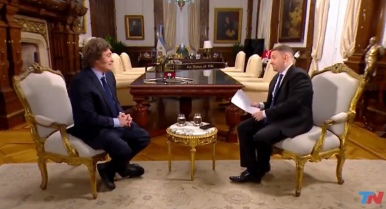 El periodista insistió a Milei en que era presidente, mientras el mandatario redundaba en que lo hizo desde su cuenta personal, como ciudadano, momento en el que el asesor Santiago Caputo interrumpió la entrevista.