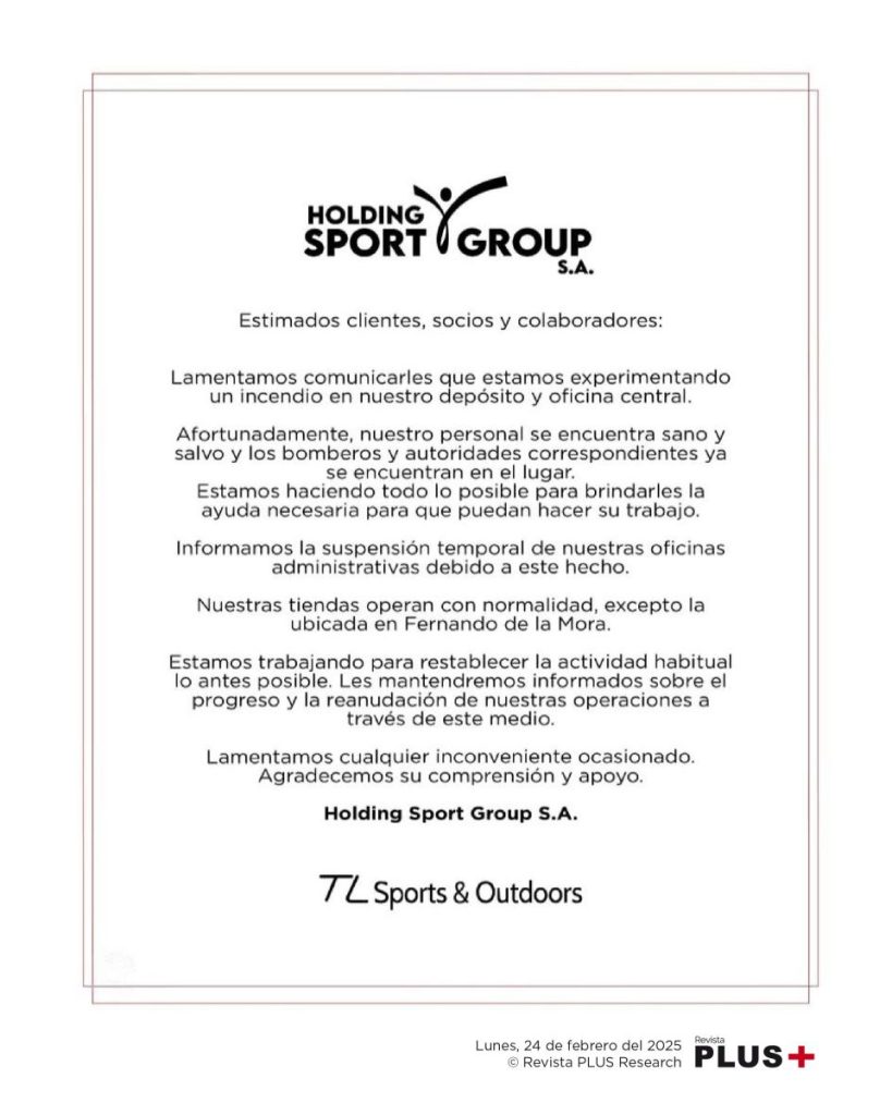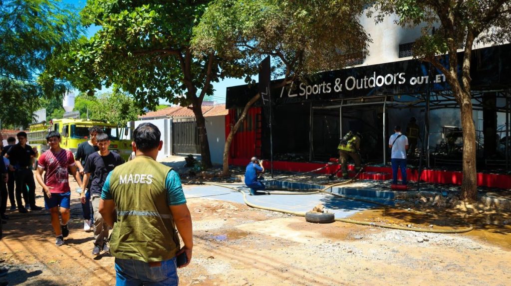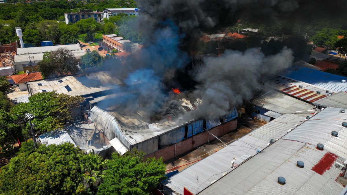 Este lunes se registró un incendio en el depósito y la oficina central de Holding Sport Group SA de TL Sports & Outdoors que funciona en la ciudad de Fernando de la Mora.