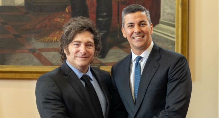 «No tengo dudas que tanto Argentina como Paraguay serán un ejemplo para toda Sudamérica. Hacia dentro, dando la batalla eterna contra el Estado omnipresente y el déficit fiscal, y hacia afuera, a través de la cooperación pacífica y el comercio», expresó Milei en una declaración leída ante la prensa tras reunirse con Peña en el Palacio de López, la sede del Ejecutivo paraguayo.