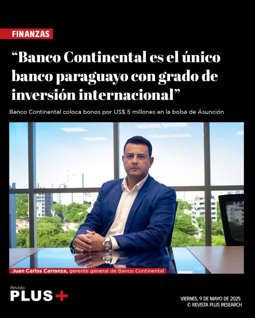 “Banco Continental es el único banco paraguayo con grado de inversión internacional, lo que respalda la solidez de esta emisión, que será destinada para créditos de mediano y largo plazo”, afirmó Juan Carlos Carranza, gerente general de Banco Continental.