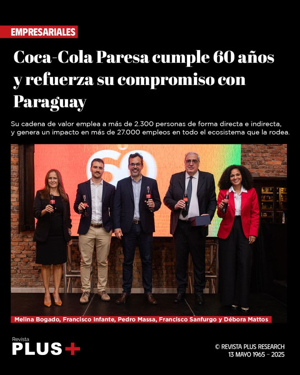 Con esta visión clara, Coca-Cola Paresa reafirma su propósito de seguir refrescando momentos y abriendo oportunidades en todos los rincones del país, con una gestión centrada en el desarrollo sostenible, el crecimiento compartido y el compromiso con la comunidad. La celebración de estos 60 años es más que una fecha: es un reconocimiento a una historia construida junto al Paraguay.