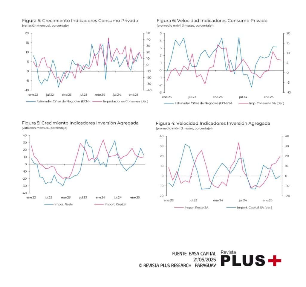 Ambos promedios móviles trimestrales repuntaron, reflejo de proyectos de construcción y reposición de equipos industriales. Sin embargo, la brecha entre la demanda de capital y el resto sugiere cautela empresarial, vinculada a un costo de financiación aún elevado en un contexto de aumento de las tasas de interés en guaraníes.