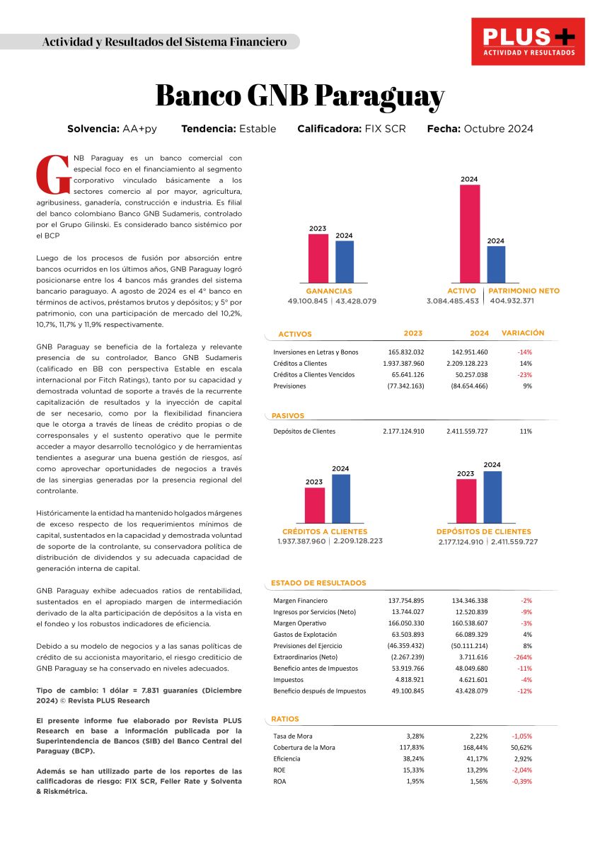 GNB Paraguay se beneficia de la fortaleza y relevante presencia de su controlador, Banco GNB Sudameris (calificado en BB con Perspectiva Estable en escala internacional por Fitch Ratings), que forma parte del Grupo Gilinski con matriz en Colombia.
