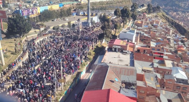 Choferes de diferentes sindicatos del transporte público se concentraron en la ciudad de El Alto y marcharon hasta La Paz para mostrar su molestia por la falta de combustible, diésel y gasolina, que les hace falta para trabajar.