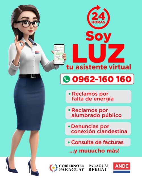 La gran protagonista de este avance tecnológico es LUZ, la asistente virtual de ANDE, que guiará a los usuarios en tiempo real para gestionar consultas, reportes y solicitudes de manera más ágil, directa y accesible.