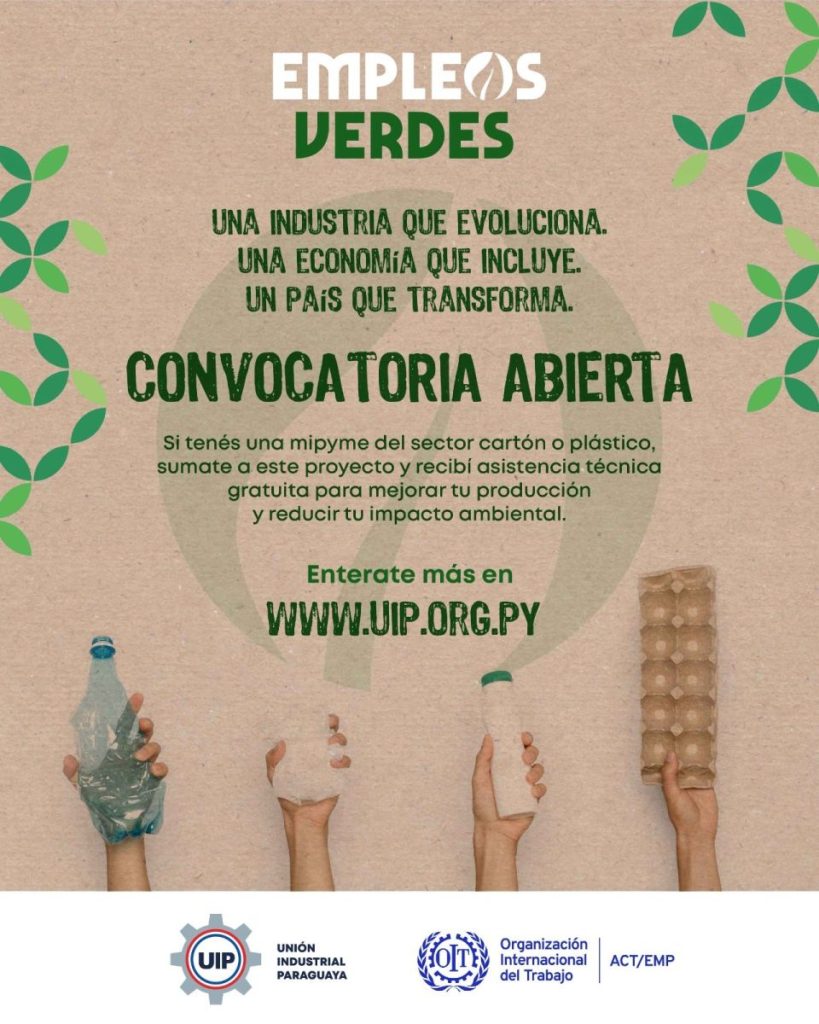 La Unión Industrial Paraguaya (UIP), con el respaldo de la Organización Internacional del Trabajo (OIT), lanzó oficialmente el proyecto “Empleos Verdes”, una ambiciosa iniciativa que busca transformar las cadenas de valor de los sectores cartón y plástico en Paraguay a través de prácticas productivas más sostenibles y socialmente inclusivas.