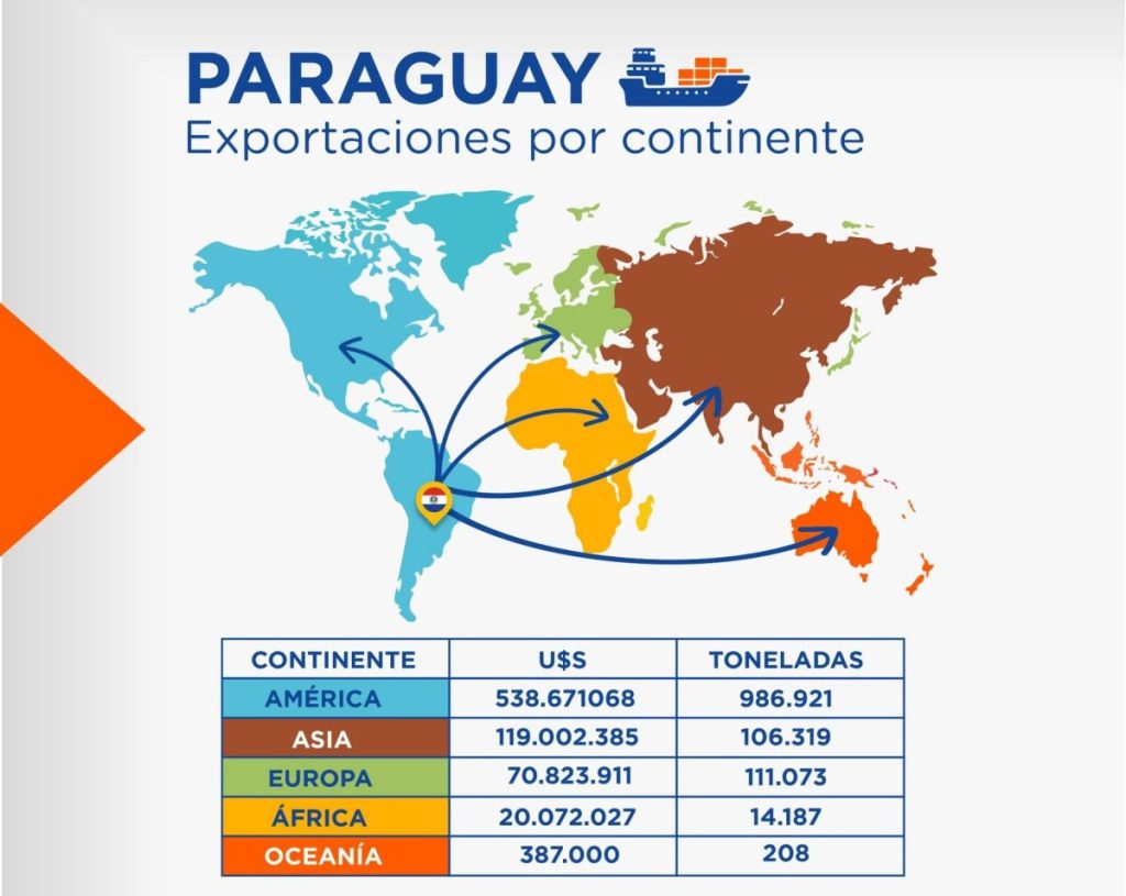 Exportaciones paraguayas superan US$ 748 millones en junio, siendo América el principal destino