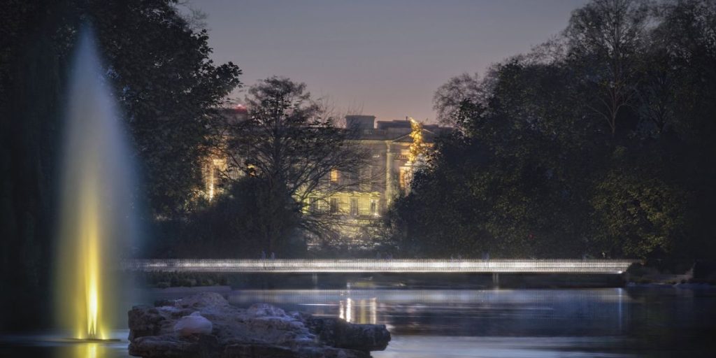 El diseño propuesto combina elementos simbólicos que reflejan la dualidad de la Reina: tradición y modernidad, deber público y vida privada. Incluirá dos jardines conmemorativos, una nueva Puerta del Príncipe Felipe, esculturas figurativas, y un puente de vidrio fundido que reemplazará al actual Puente Azul, evocando la tiara nupcial de Isabel II como símbolo de unión.
