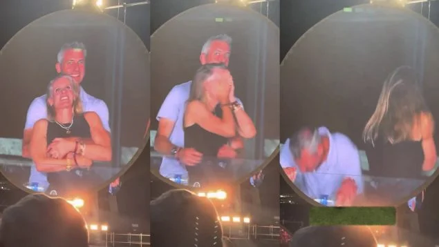 En la grabación, que acumula millones de reproducciones en varias redes sociales, el cantante de Coldplay, Chris Martin, dice ante el público: «Uy mira a esos dos: O están teniendo una aventura o son muy tímidos».