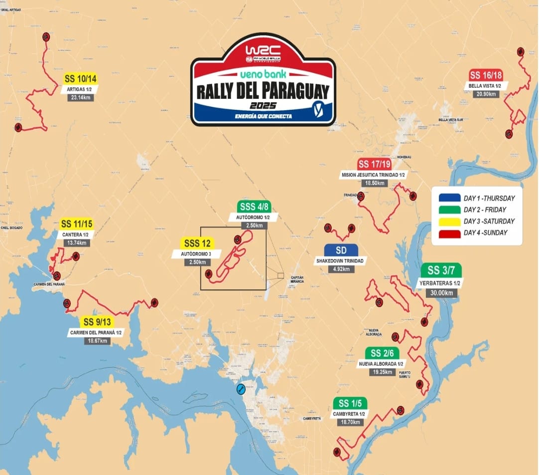 Hohenau se encuentra en una ubicación estratégica para seguir otros tramos clave del Rally como Bella Vista, Trinidad, Nueva Alborada, Encarnación y Carmen del Paraná.