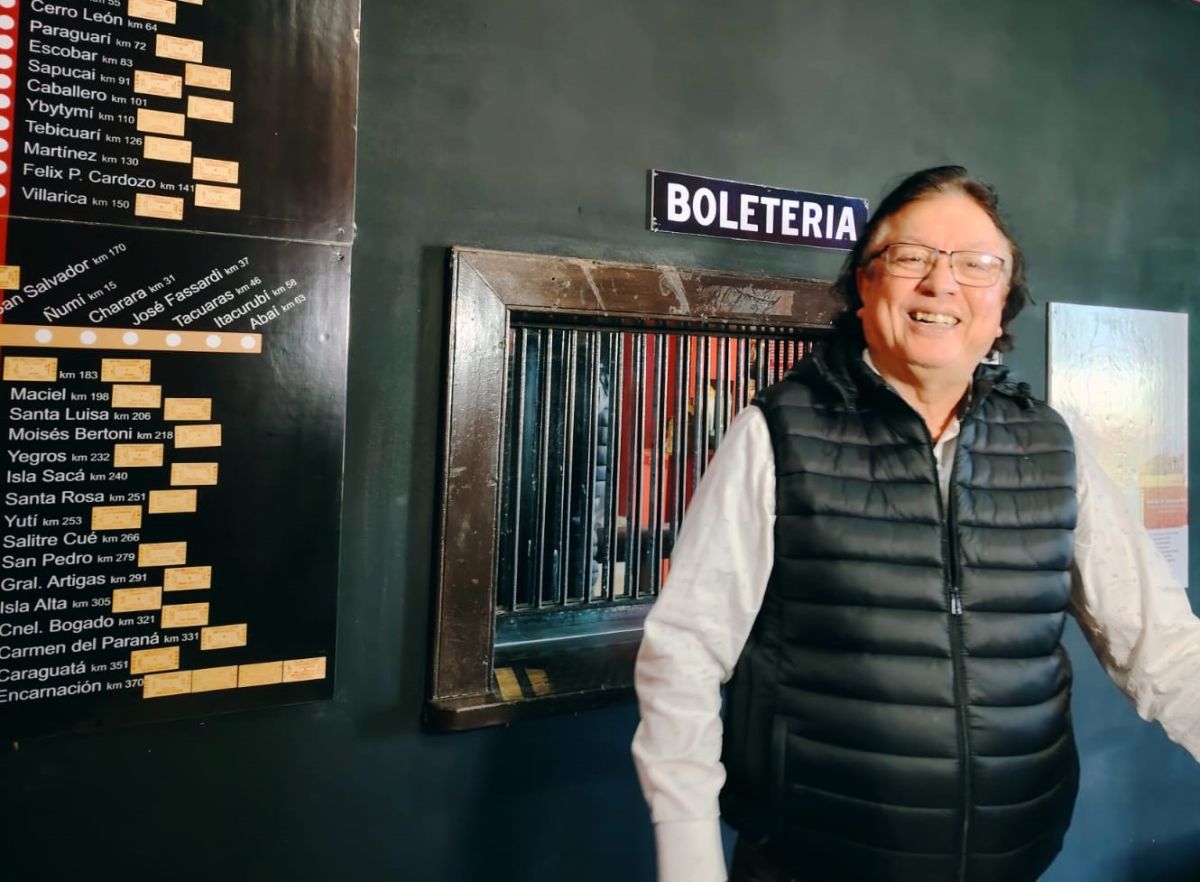“Esto es una muestra de lo que fue el ferrocarril desde su comienzo hasta lo que llegó y lo que hoy mantenemos en este museo. La estación original de Encarnación, inaugurada en 1913, quedó bajo agua por las represas, y lo que vemos hoy es una réplica con un 70% de piezas originales”, explica.