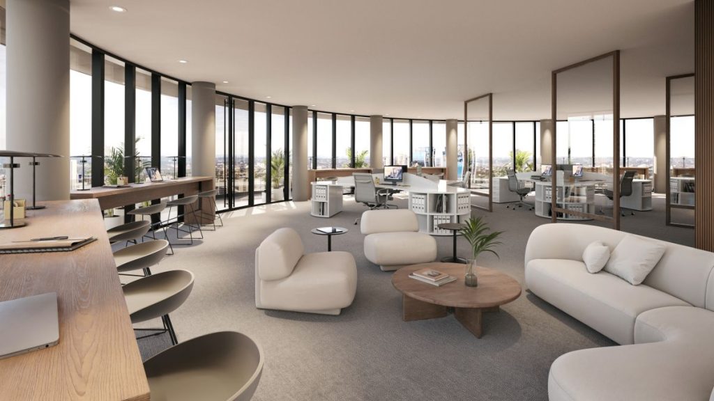 La principal novedad que propone Matter es la inclusión de balcones en las oficinas, brindando no solo mayor luz natural y ventilación, sino un espacio pensado para inspirar y crear ambientes más amenos y distendidos, donde la prioridad será ofrecer un entorno más “inteligente”, explicó Estefanía Dubarry, gerente de ventas de Consorcio JGL Casatua.