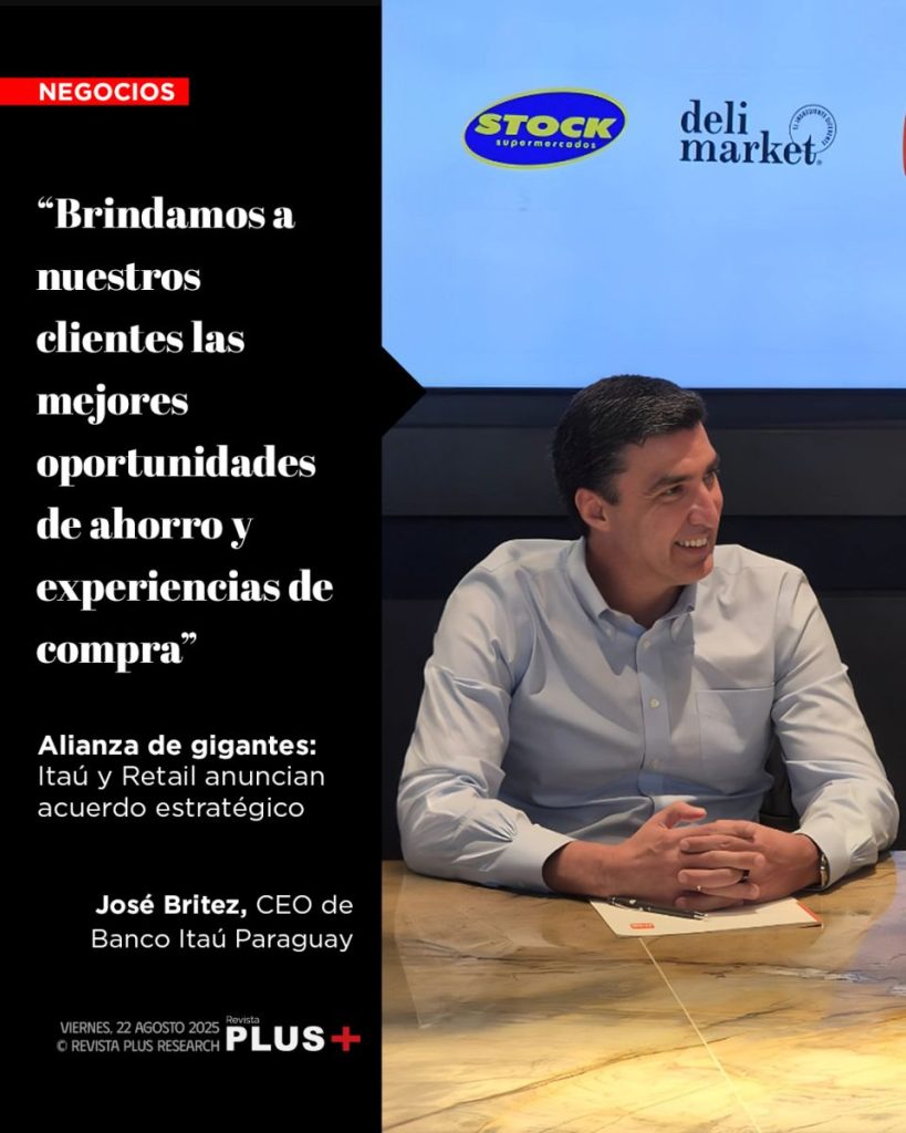 Asunción (Paraguay), 22 ago. (PLUS).- Esta alianza busca consolidar la presencia de Itaú en la cadena de supermercados de Retail (Stock, Superseis y Delimarket), a través de los cuales se pueden realizar operaciones bancarias, pagos de servicios y solicitudes de productos, para clientes y no clientes.