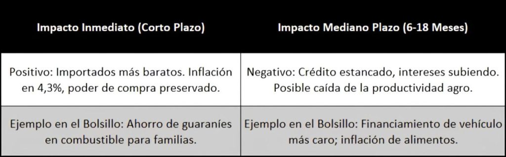 • Márgenes bancarios comprimidos e intereses más altos: Los bancos, forzados a captar guaraníes caros en el interbancario para honrar hedges (especialmente de exportadores de soja, que generaron US$ 4 mil millones en la zafra), vieron sus márgenes de spread caer 2 puntos porcentuales.