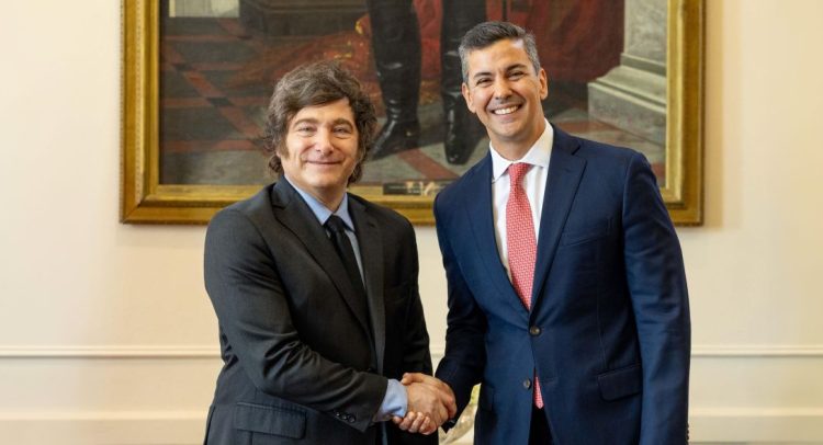 Milei, quien llegó esta madrugada (local) a Paraguay, fue recibido por Peña con honores militares y la entonación de los himnos de ambos países en el Palacio de López, la sede del Ejecutivo.