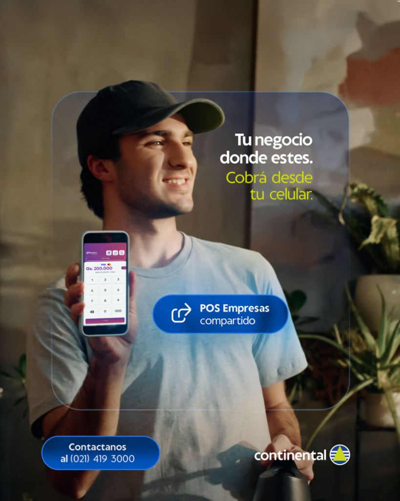 Asunción (Paraguay), 28 oct. (PLUS).- Banco Continental vuelve a marcar un hito en innovación financiera con el lanzamiento del POS Empresas, una nueva funcionalidad dentro de su web y app empresas, que permite compartir el POS con una cantidad ilimitada de personas habilitándolas para cobrar desde sus propios celulares, con acreditación instantánea a la cuenta de la empresa.
