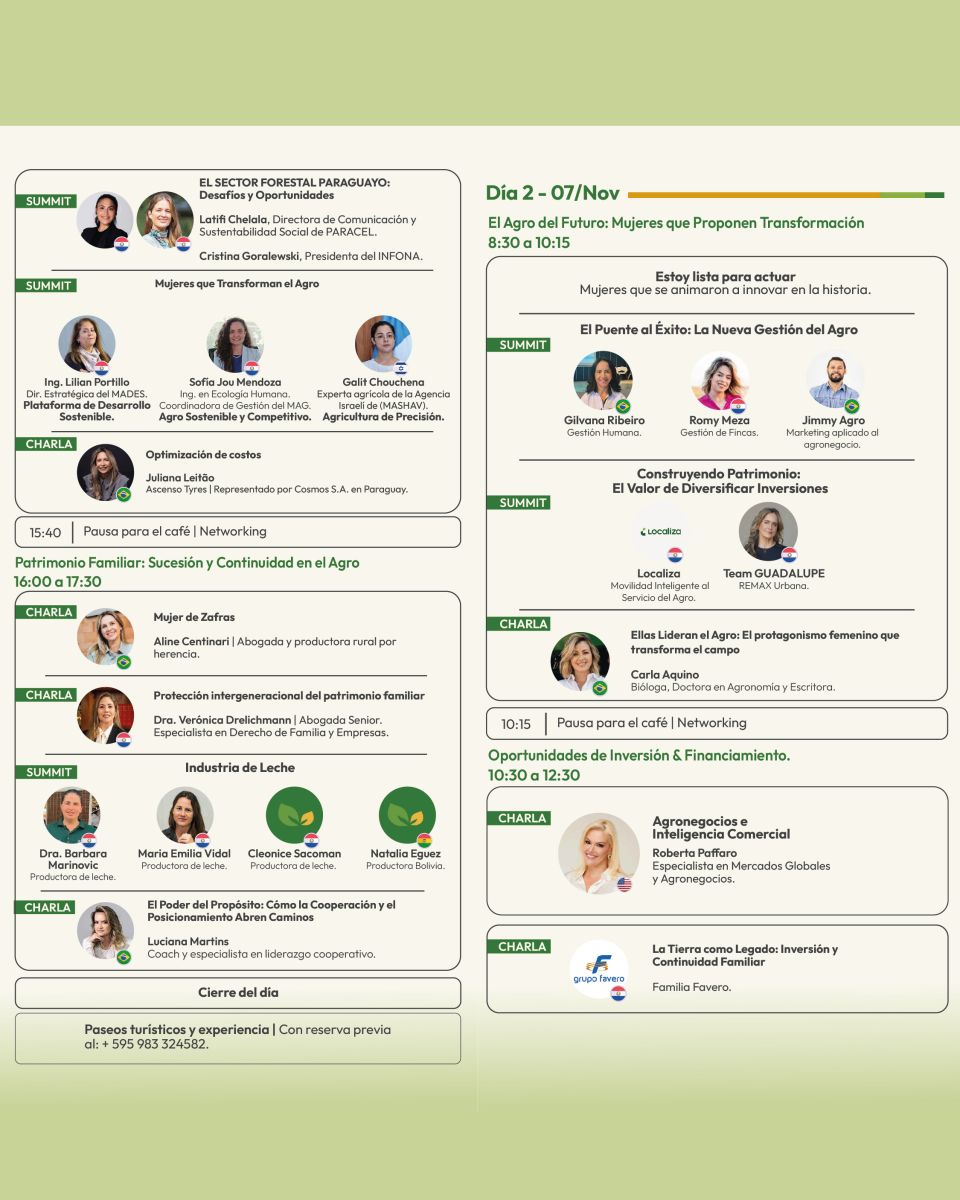 También participarán representantes de empresas líderes como ueno Bank, Grupo Favero, Cafyt, Upisa y Paracel, que presentarán casos de éxito en producción sostenible y tecnologías que están revolucionando la manera de producir alimentos en la región.