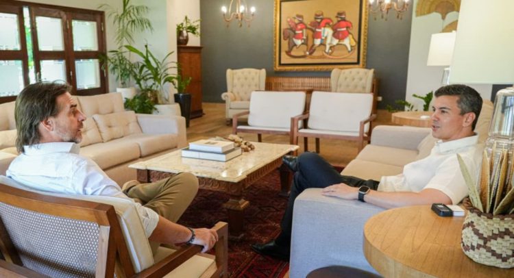 «El desarrollo de nuestra región requiere de un liderazgo comprometido y de un diálogo fluido», indicó Peña en la red social X tras una reunión con Lacalle en la residencia presidencial Mburuvicha Róga (‘la casa del líder’, en idioma guaraní).