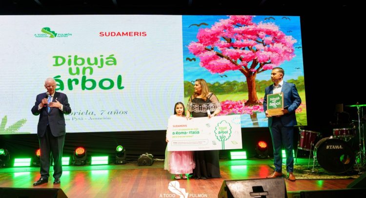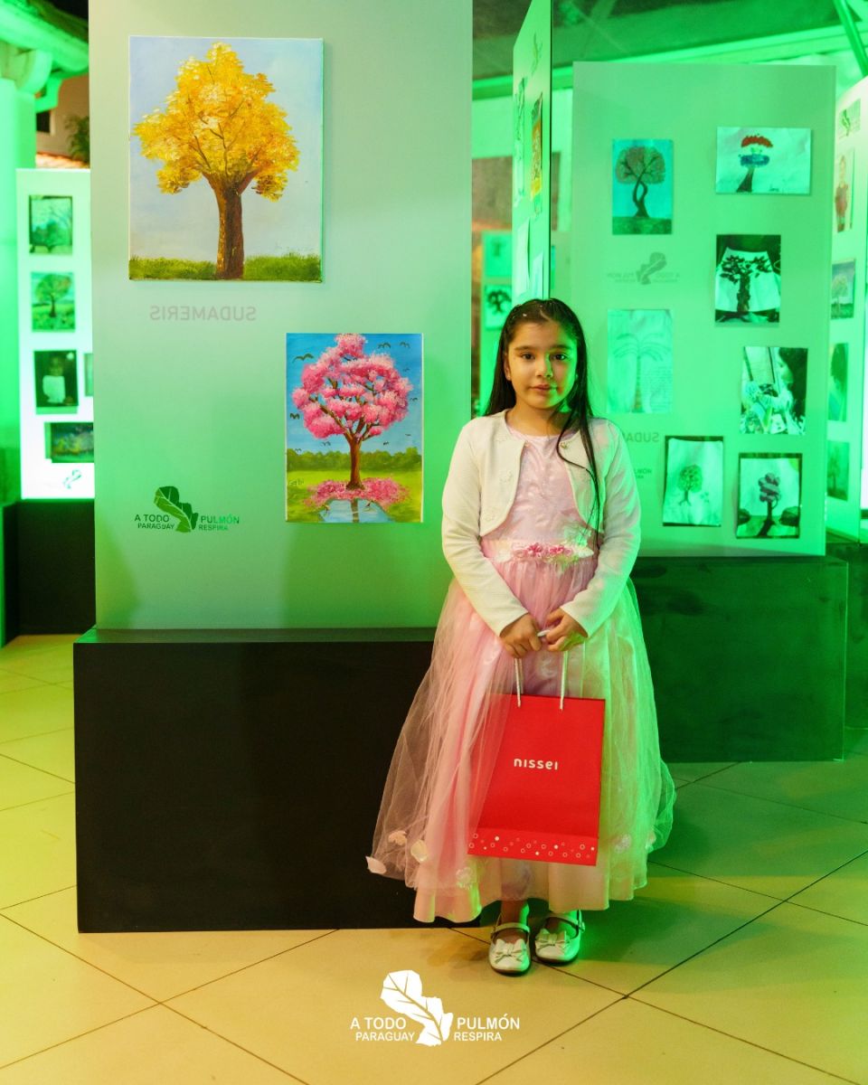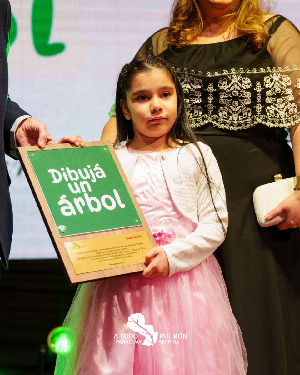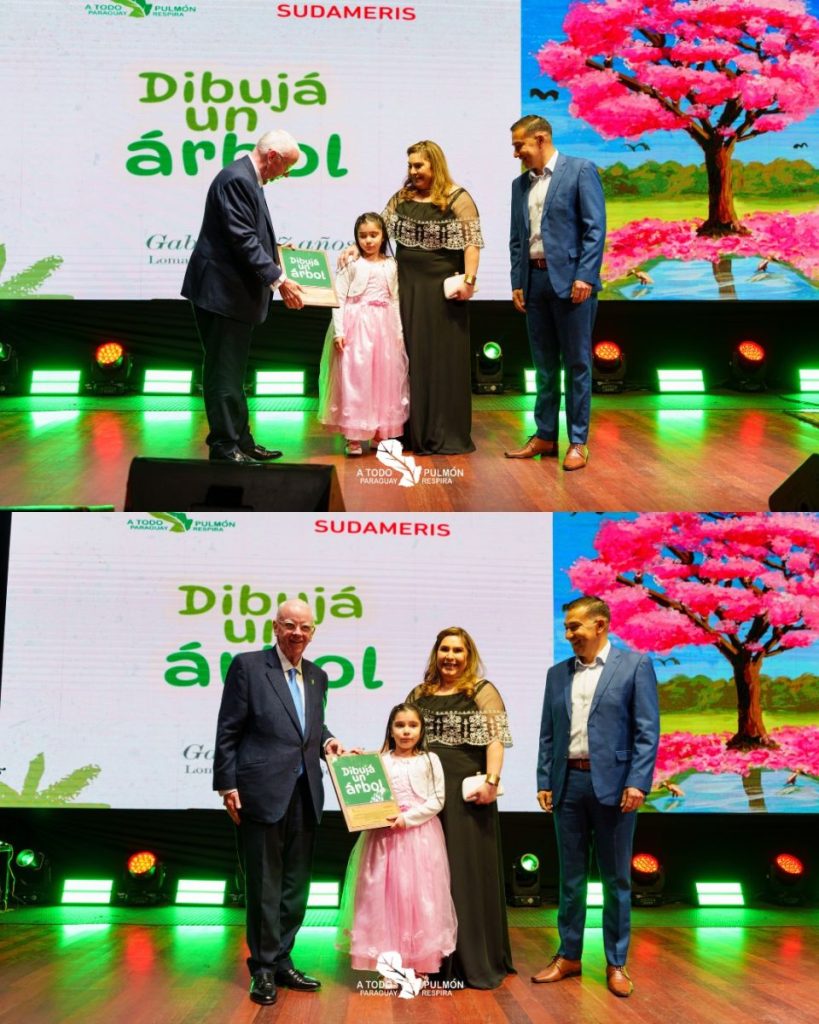 Gabriela Helena Espínola Villalba, de 7 años y alumna de 2.º grado de la Escuela Parroquial San Agustín de Loma Pytã (Asunción), se consagró ganadora nacional del concurso “Dibujá un Árbol”, organizado por A Todo Pulmón y Sudameris.