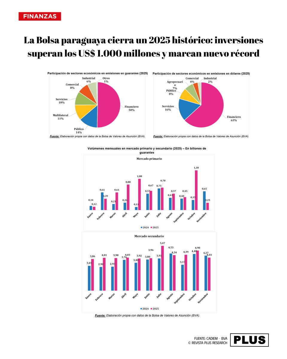 El mercado secundario también acompañó la tendencia, alcanzando G. 46,8 billones hasta noviembre y superando su propio máximo de 2024. Julio se mantuvo como el mes más dinámico del año, con operaciones por G. 5,4 billones.