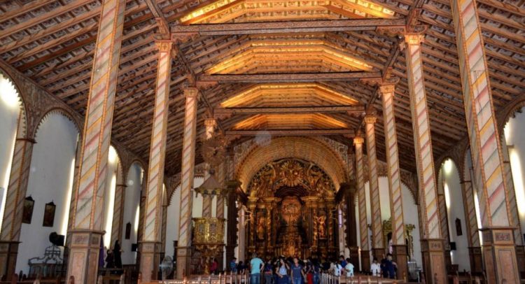 Al atravesar las puertas del templo, el visitante se encuentra con deslumbrantes tallas de madera hechas a mano por indígenas guaraníes, entre 1755 y 1772, con la dirección de religiosos franciscanos y el diseño del maestro escultor portugués José de Sousa Cavadas.