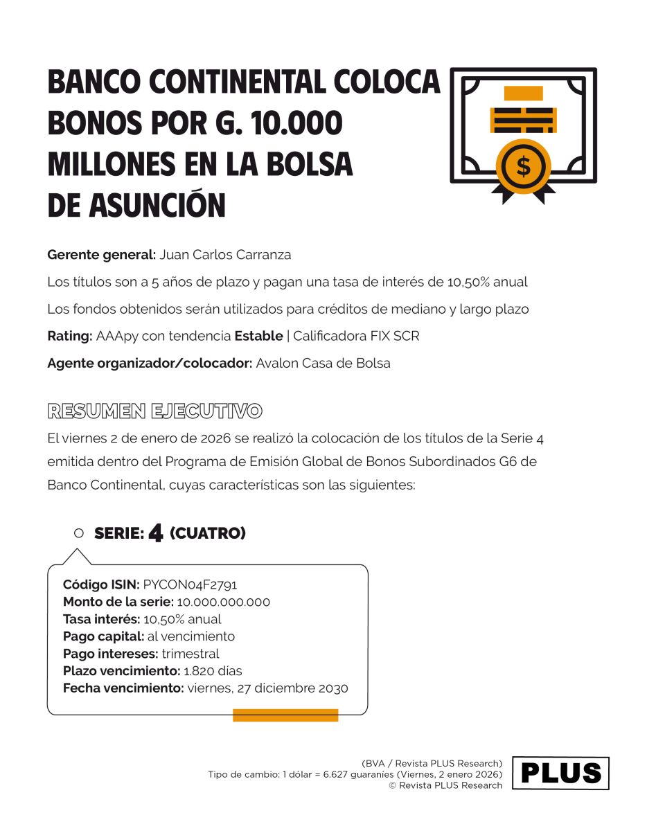 El viernes 2 de enero de 2026 se realizó la colocación de los títulos de la Serie 4 emitida dentro del Programa de Emisión Global de Bonos Subordinados G6 de Banco Continental, cuyas características son las siguientes: