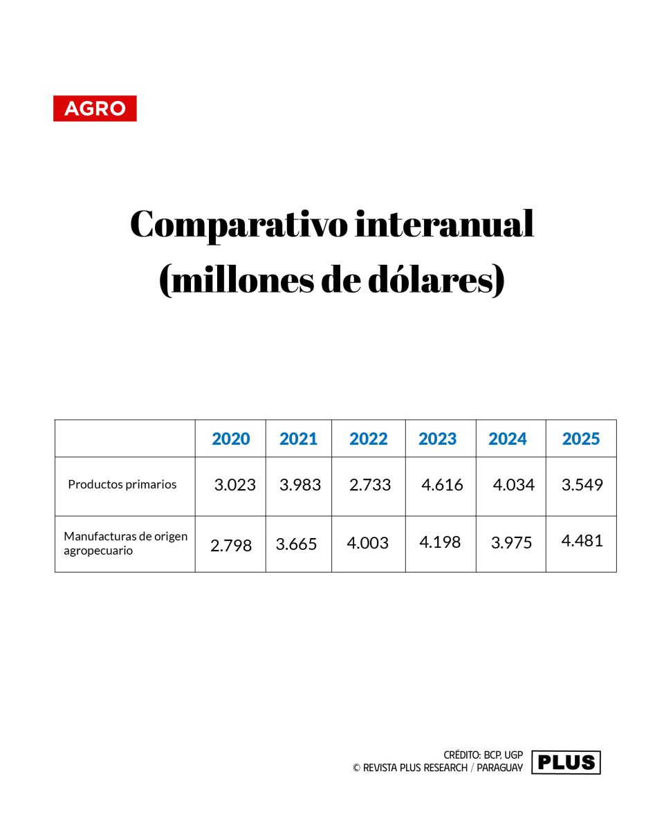 Las exportaciones paraguayas de manufacturas de origen agropecuario (MOA) mostraron en 2025 un desempeño superior al de los productos primarios al ingresar US$ 4.481 millones, es decir, US$ 932 millones más que los US$ 3.549 millones generados por la producción primaria, según datos del Banco Central del Paraguay.
