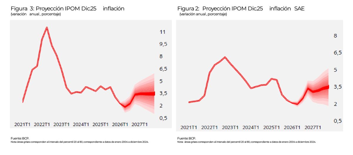 El análisis de las proyecciones del Informe de Política Monetaria (IPOM) de diciembre sugiere que el BCP ya contemplaba un escenario inflacionario benigno, con convergencia hacia la meta por debajo del centro del rango objetivo. La decisión de enero, aunque técnicamente justificada por factores como el anclaje de expectativas y el contexto internacional favorable, representa un cambio de tono en la comunicación respecto al mes anterior.