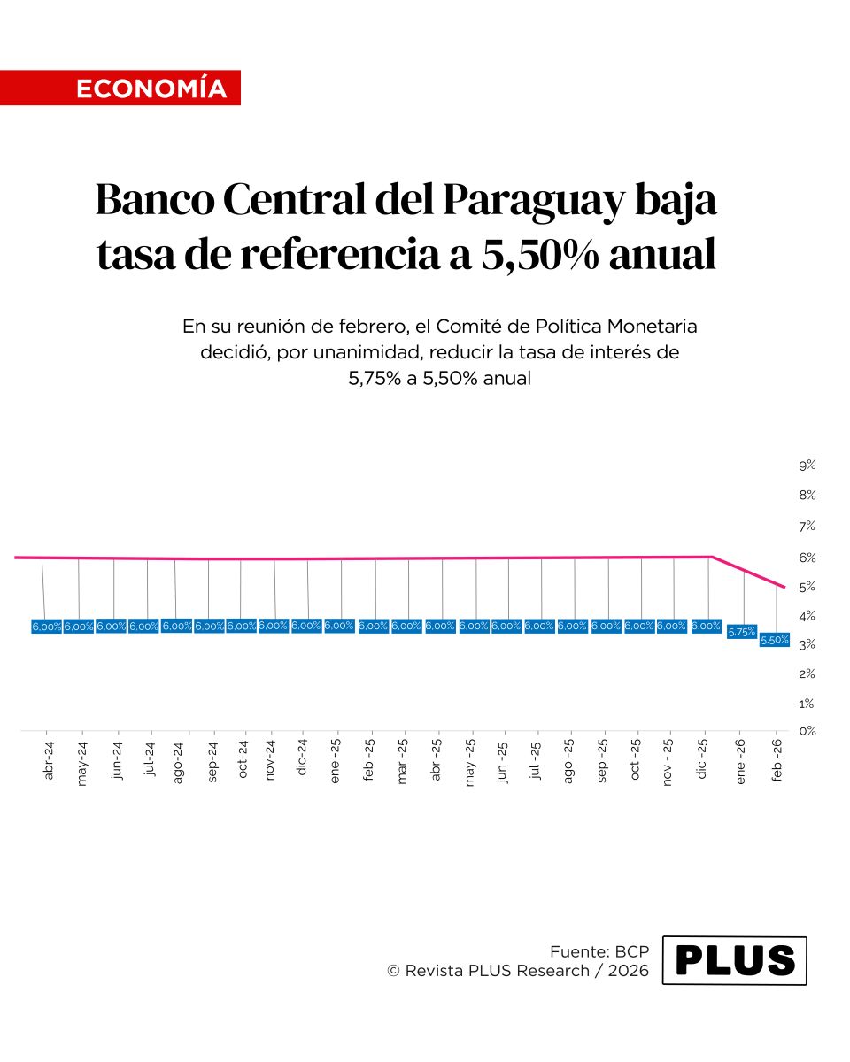 El Banco Central del Paraguay (BCP) decidió recortar nuevamente su tasa de interés de política monetaria (TPM), en un contexto de menor presión inflacionaria y expectativas consolidadas en torno a la nueva meta oficial.