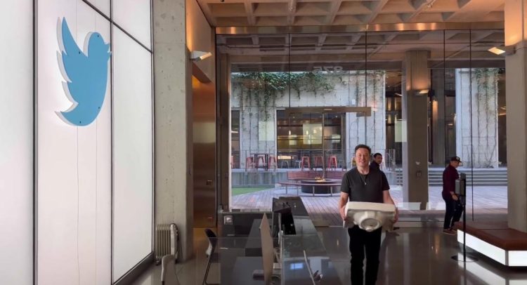 En su cuenta en esa plataforma, el multimillonario escribió «Entrando en la sede de Twitter, ¡asimílenlo!», un mensaje que incluía la palabra «lavamanos» en inglés, a la que hacía referencia en clave de humor durante su entrada en el edificio.
