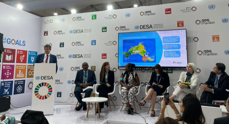 El evento tuvo lugar en el Pabellón de los Objetivos de Desarrollo Sostenible (ODS) y fue organizado por el Departamento de Asuntos Económicos y Sociales de Naciones Unidas (Undesa, por sus siglas en inglés); la moderadora del módulo fue la jefa de la sección Energía de Unescwa, Radia Sedaoui.